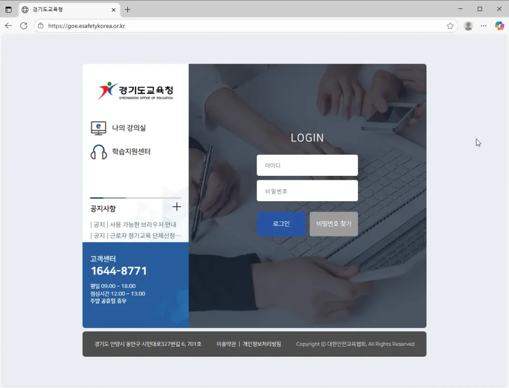 경기도 교육청 근로자 안전보건교육 (goe.esafetykorea.or.kr)